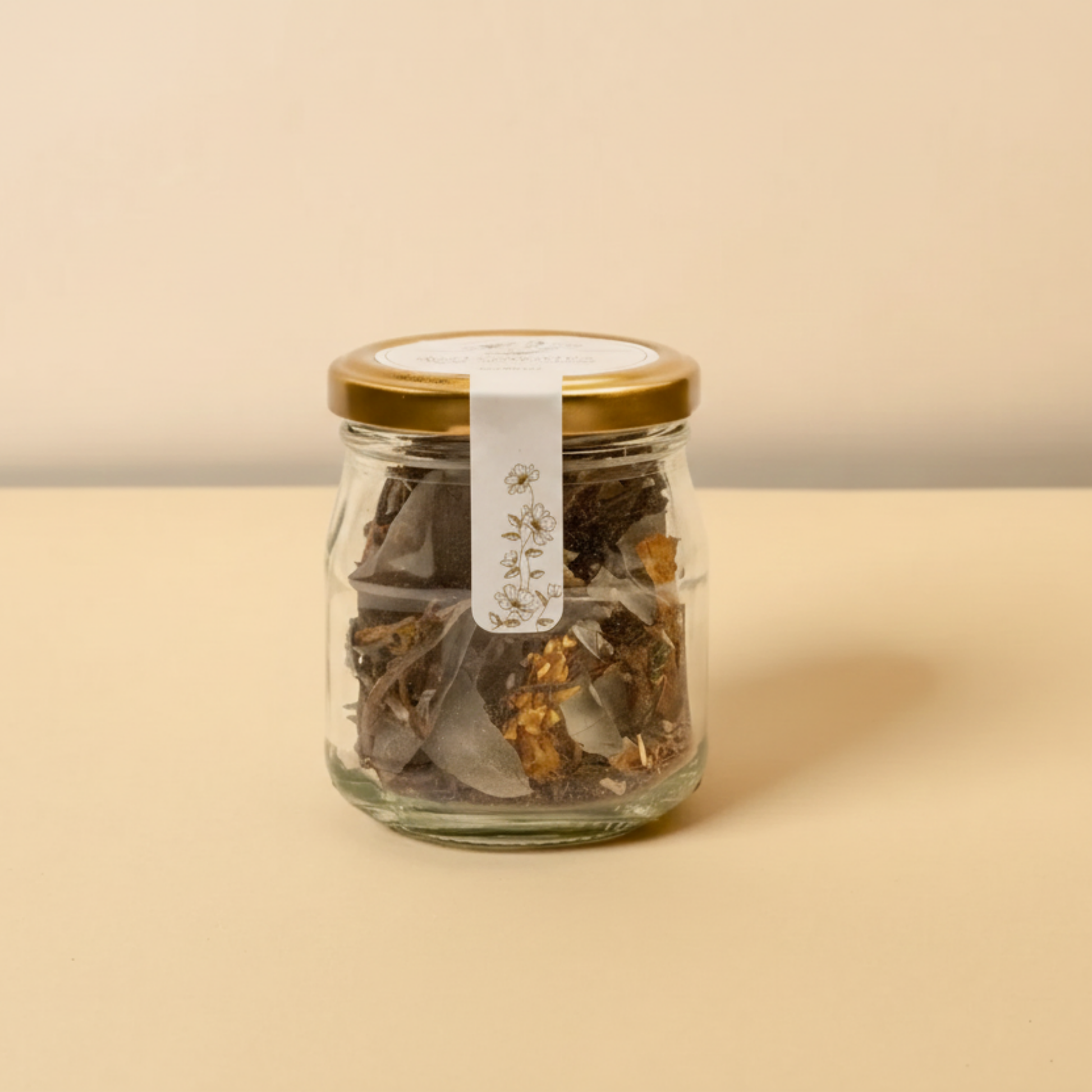 Descubre la magia ancestral de la purificación y el bienestar con nuestro exclusivo sahumerio de plantas dulces secas y palo santo. Este producto artesanal, cuidadosamente elaborado, viene en un elegante frasco de vidrio que preserva la frescura y las propiedades de sus ingredientes naturales.
